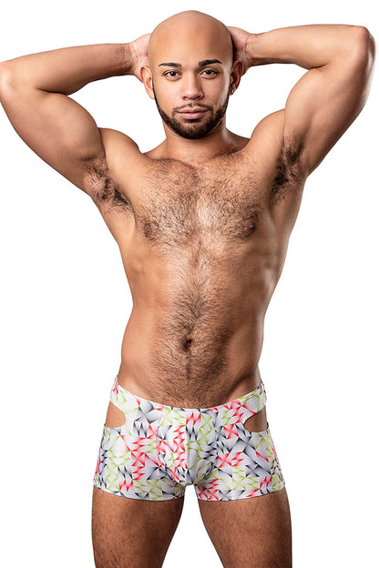 From the Cut It Out! collection by Male Power, the Cutout Mini Short with it's low cut waist and high cut legs also features deep cut windows on the hips allowing for a sexy yet modest glimpse of skin.