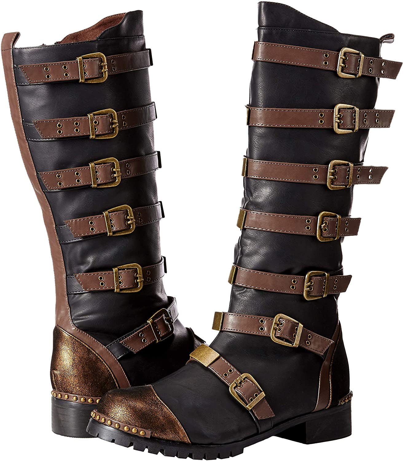 Ellie Shoes 158-PUNK 1.5" Mens Knee Boot with Buckles. Brown. Size Men's Small (8/9). USED ITEM. Only very minor wear and use marks, like new. Will be in original box, though box is fairly beaten up. USED ITEMs are sold as is and are non-refundable.