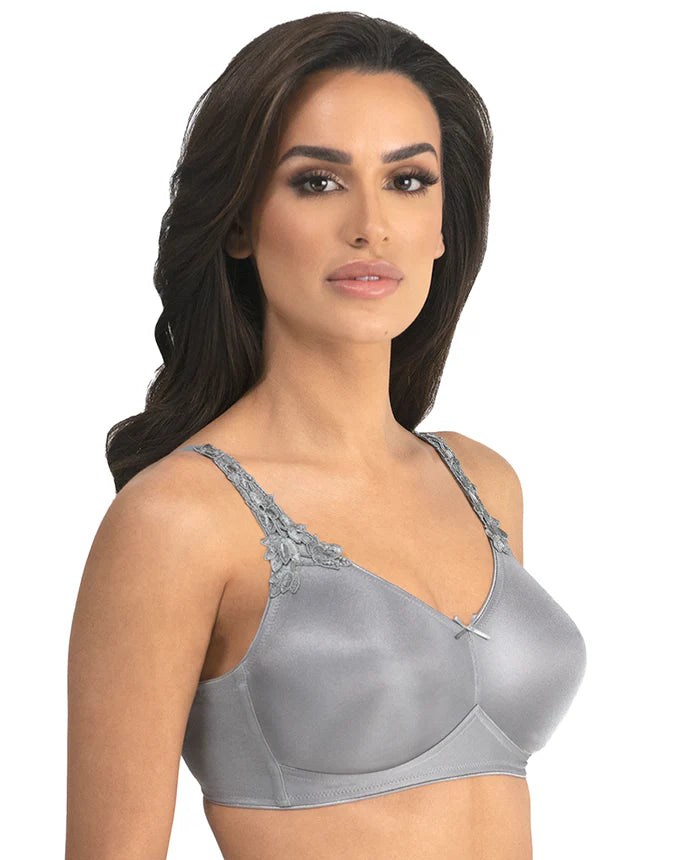 Our favorite wire-free minimizer will soon be your favorite as well! Meet Jillian, the ultimate in seamless support, shaping, and comfort. Enhance your shape without flattening as you reduce your bust line by up to an inch. Jillian eliminates gaps under button front tops. Molded simplex cups lift and shape in smooth luxury. The plush, cushioned, extra wide band supports comfortably and minimizes bounce. The camisole back with smooth, adjustable, close set straps prevent slipping. Wide sides with light boning, lead to a tall back, eliminating bulges and insuring smoothness and stability. European Guipure lace appliques and fine satin details enhance the luxurious feel. All inner edges are lined with plush elastic for comfort and stability. Cushioned, padded, secure hook & eye rear closure. Jillian is an essential staple of your everyday bra rotation!