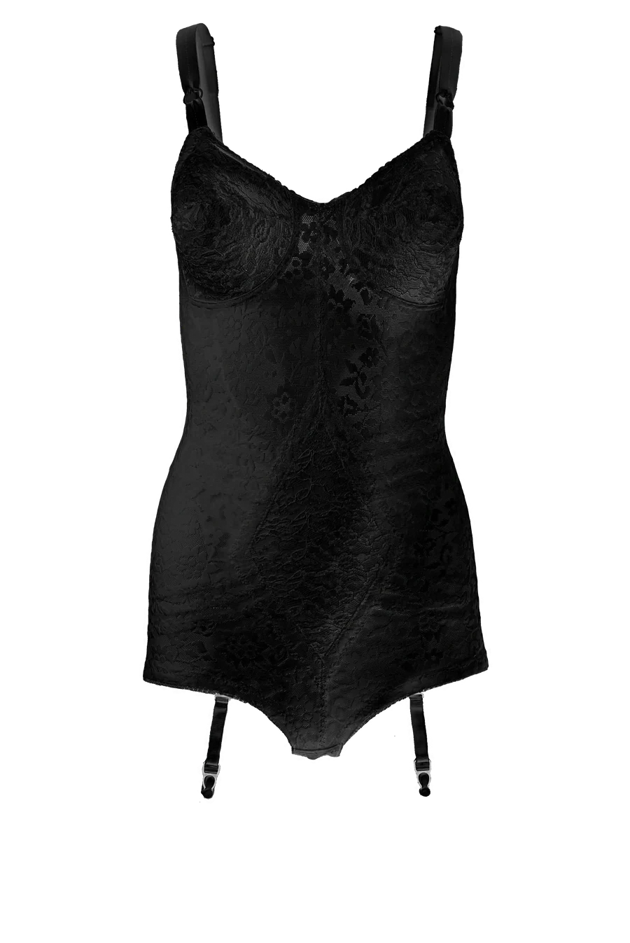This extra firm body briefer features our exclusive contour bands, stomach shaping panels and flat sewn seems. It is made of lacette jacquard knit fabric made of 70% nylon, 30% Invista® Lycra® with two-way stretch in a special lace floral design. Extra Firm Support Level. 70% nylon, 30% Invista® Lycra® with two-way stretch.