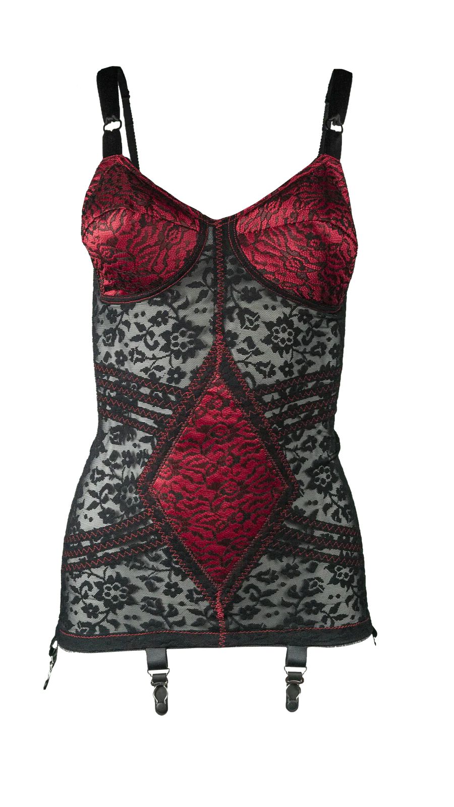 This white lace body shaper briefer features power-net lace, exclusive contour bands, and metal garters for comfort and fit. This lacette jacquard knit fabric is made of 70% nylon, 30% Invista® Lycra® with two-way stretch in a special lace floral design. Extra Firm Support Level. Lacette jacquard knit fabric made of 70% nylon, 30% Invista® Lycra® with two-way stretch.