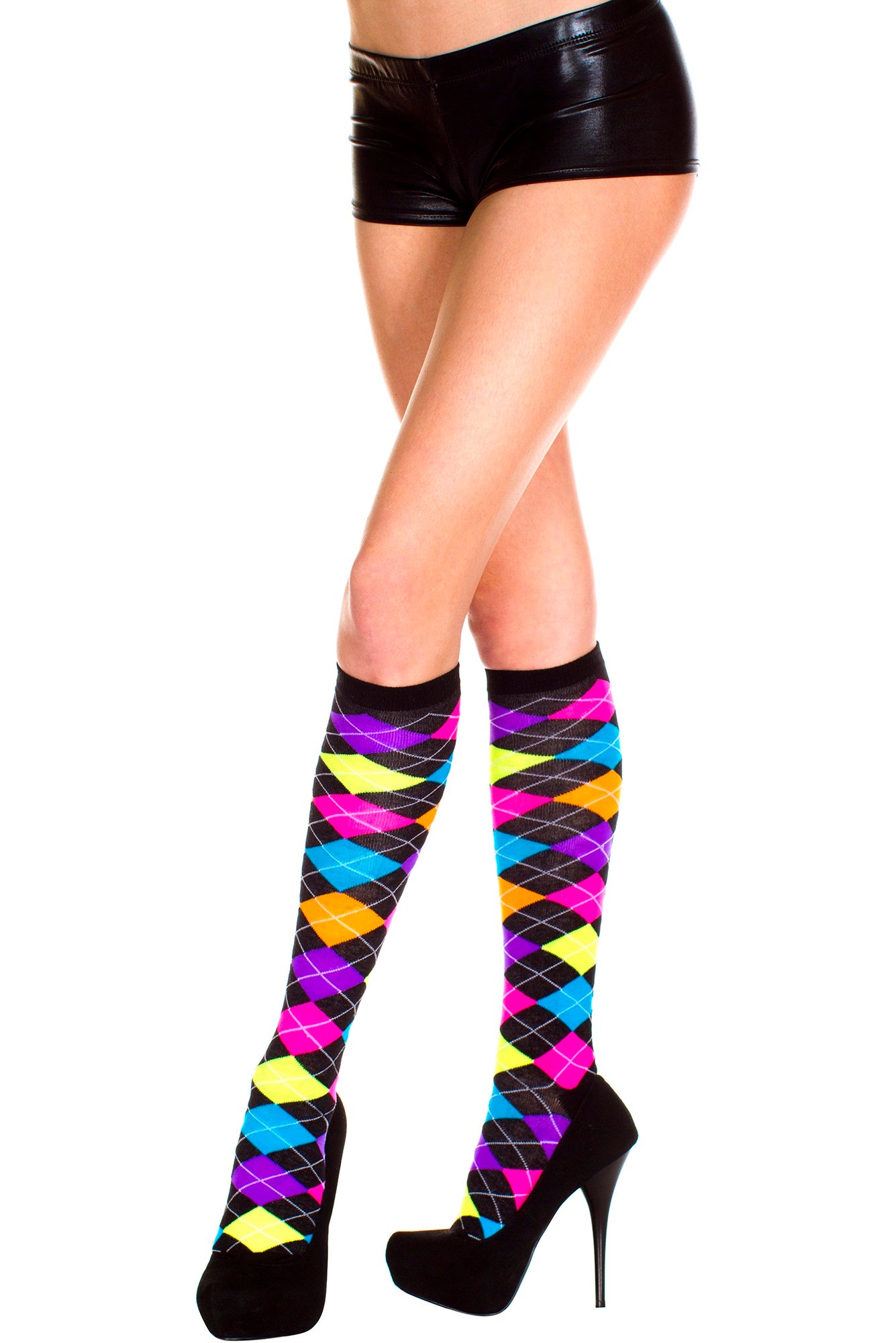 Acrylic Neon Argyle Knee High ML