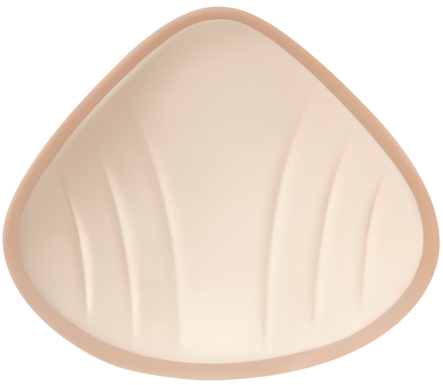 New ultra lightweight silicone formulation makes the weight of the form nearly 40 % less than standard silicone forms of the same shapes and size, while maintaining standards for durability. Slightly firmer lightweight silicone in the back layer helps stabilize the form when worn in a bra pocket. Patented Comfort+ temperature-equalizing material integrated into the back layer regulates fluctuations in body heat to help reduce perspiration behind the form. Available in Ivory and Tawny. Key Features 1. New ultra lightweight silicone formulation makes the weight of the form nearly 40 % less than standard silicone forms of the same shapes and size, while maintaining standards for durability 2. Slightly firmer lightweight silicone in the back layer helps stabilize the form when worn in a bra pocket 3. Patented Comfort+ temperature-equalizing material integrated into the back layer regulates fluctuations in body heat to help reduce perspiration behind the form 4. A newly designed modern shape that: Has more rounded volume on the lower section to make the form drape naturally than any other lightweight form; Narrower and more rounded footprint than 2S to avoid overlapping a natural breast or breast form on the other side; Has a back side that is more curved, with small channels, that helps the form bend to and hug the body more closely