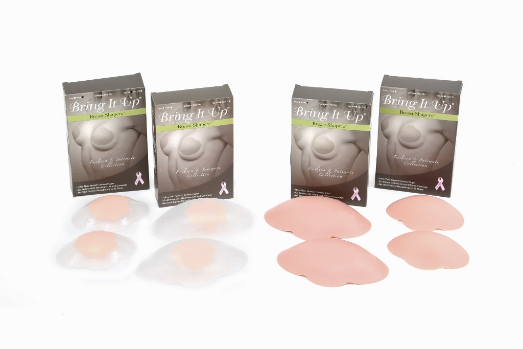 Shape your breasts with these Bring It Up Breast Shapers maximum lift breast shapers with unique, comfortable, stretch contour shape. Can be worn braless with maximum nipple coverage or with a bra for added support. No stick center and is reusable up to 25 times. 100% Silicone adhesive. Not recommended for women with sensitive skin. Available only in nude or clear color. Every woman dreams of having perfectly shaped, perky breasts, and these contoured Reusable Breast Shaping Cups won't let you down - literally. Specifically designed to provide maximum lift, Bring It Up Breast Shapers provide total nipple coverage while smoothing, lifting and supporting your breasts. Available in two colors: NUDE or CLEAR with BONUS silicone nipple cover and available in Four sizes: Cup Size A/C , Cup Size C/D, Cup Size DD (nude only), Cup Size DDD (nude only). These unique, comfortable, stretch contour shaping cups were specially designed to provide maximum perkiness by lifting the breast from the top using Bring It Up®'s patented method. The result: perfectly shaped and uplifted breasts. Go braless with total nipple coverage and smooth support. Undetectable even under the thinnest white t-shirt! Totally seamless under the slinkiest clothes. Adjustable to create sexy cleavage without adding size or padding! Ultra-thin, Stretch Contour Breast Shapers Lift Breasts, Eliminate Sag and Create Cleavage. Maximum Comfort and Nipple Coverage Give Your Breasts a Beautiful Shape. Features a No Stick Center, Reuse up to 25 times Watch our Instructional Video: /wp-content/uploads/2016/03/Breast-Shaper-SD.mp4 BRING IT UP BREAST SHAPERS Bring It Up Breast Shapers Bring It Up Breast Shapers