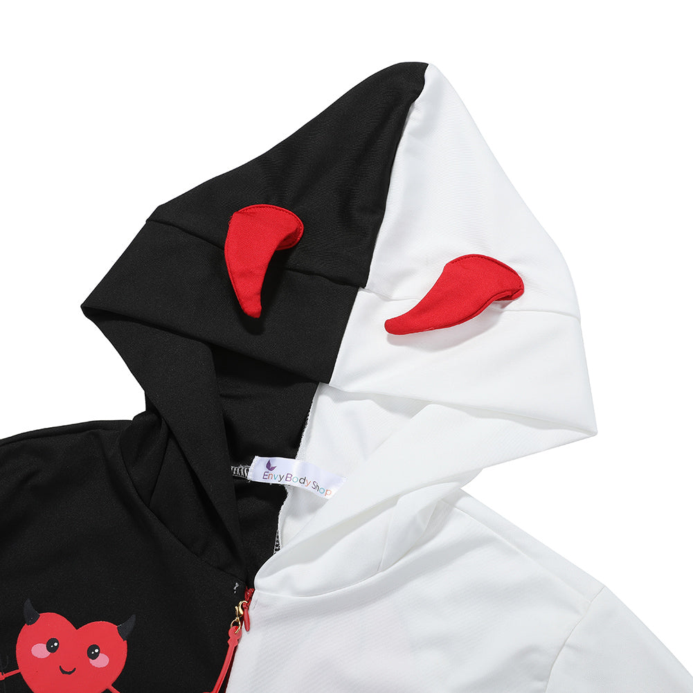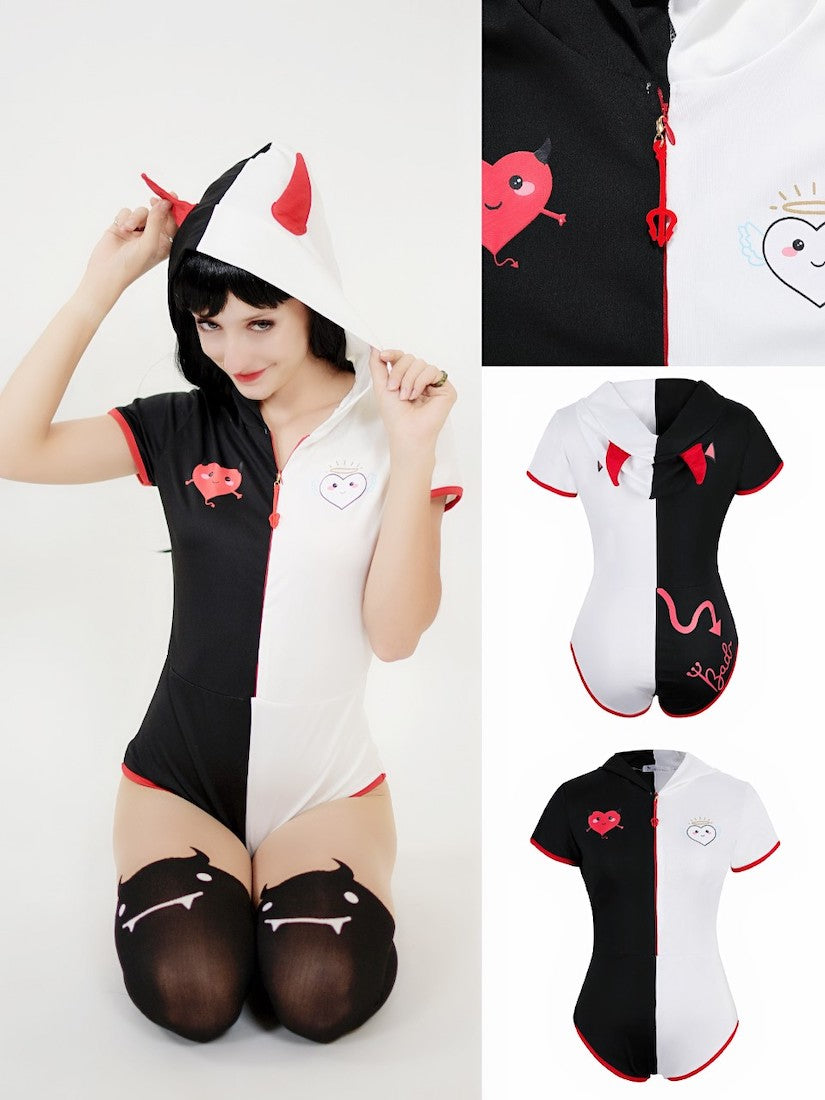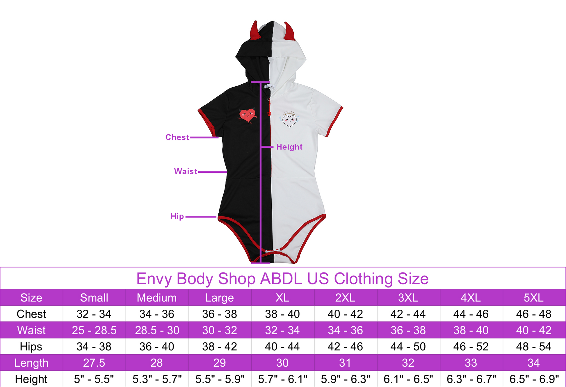 Cute Devil Or Angel Adult Romper are unique yet suitable for all year long private/public wearing. Three crotch snaps for easy dressing and a secure fit. come with hoodie design Thicker, higher quality fabric than other brands that is shaped to fit the human body **Pantyhose is not included/stuffy not included Soft on skin and stretches to fit milk silk Great for age-play/cosplay/costume/ kawaii fashion