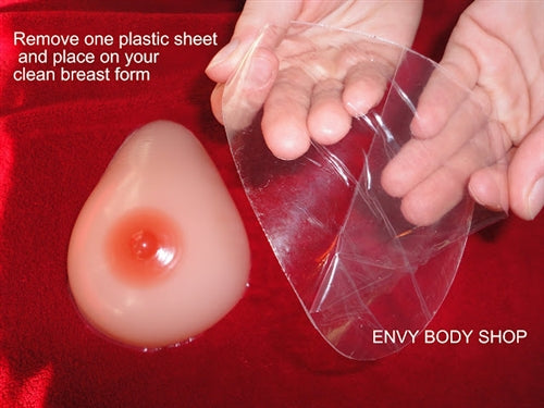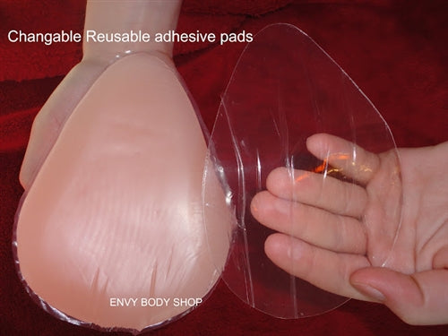 Easily apply silicone breast forms to the chest with these Envy Body Shop Reusable Adhesive Breast Pads. No need to create a mess or irritation with glues and tape. The adhesive breast pads are good for 200 uses. Want to find a bigger adhesive breast pads? check out Envy Body Shop Exclusive Silicone Adhesive Breast Pads for No bra needed Breast Form Peel the paper backing from one side of the tape and attach it to the form. Peel the paper backing from the other side of the tape. Hold the breast form over your chest and use a mirror to align it correctly. Press it firmly against your chest. When you are done wearing the form, gently peel it away from the chest. The double-sided tape should not leave any residue on your skin or on the form. If you are having trouble peeling the tape from your skin or off of the form, use a little baby oil to help release the stickiness. Breast forms are always meant to be worn inside a bra. The tape is only meant to help keep them securely in place. Wash forms with mild soap and water after using tape. Do not add tape on top of tape that is already on the form. Envy Body Shop Reusable Adhesive Breast Pads Sizes Find the right size adhesive breast pad for the silicone breast form you use. Small: 4" x 6" Medium: 4" x 6" Large: 4.4" x 6.4" X-Large: 4.6" x 6.4" 2X-Large: 5 x 6.5" 3X-Large: 5 x 6.6" 4X-Large: 5" x 7" 5X-Large: 5.5" x 7.2" 6X-Large: 5.9" x 7.6" 7X-Large: 5.9" x 7.6"