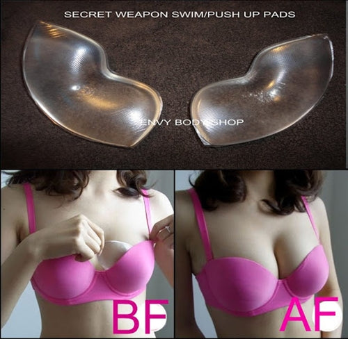 Envy Body Shop Silicone Push Up Breast Pads Secret Weapon-The silicone push up breast pads are designed to fit perfectly in your sexy summer swimsuit to give you that added push. It is your must have little secret to create cleavage. Enhance your breast size and cleavage to the head-turning size you desire. Available only in clear and in one size. Measures about 6 inches across and 3 inches wide. Featured on Rachael Ray Show on TV: Look Your Best at the Beach with 3 Swimsuit … – Rachael Ray Show Envy Body Shop Silicone breast pads were recommended by Rachael Ray on TV. http://www.rachaelrayshow.com/lifestyle/20060_look_your_best_at_the_beach_with_3_swimsuit_solutions/ Envy Body Shop Silicone Push Up Breast Pads Secret Weapon
