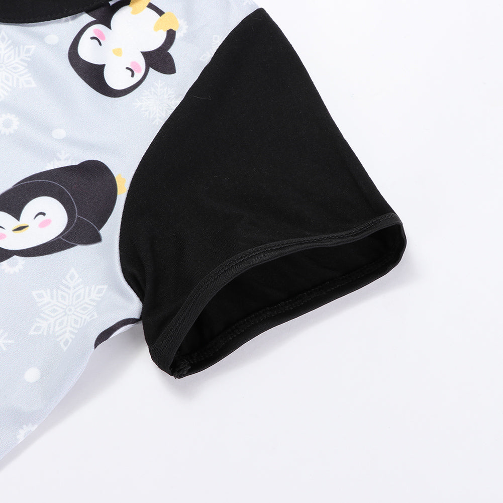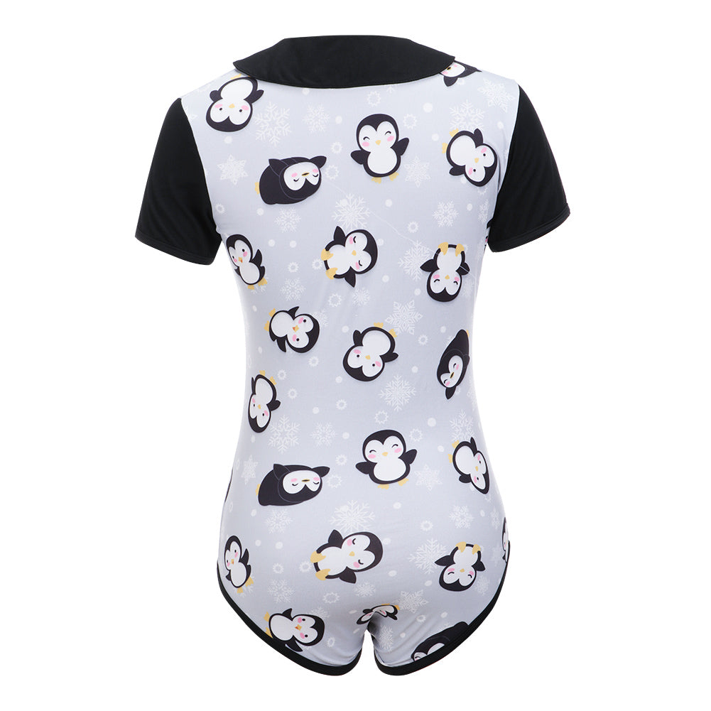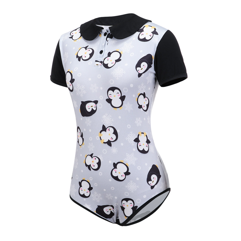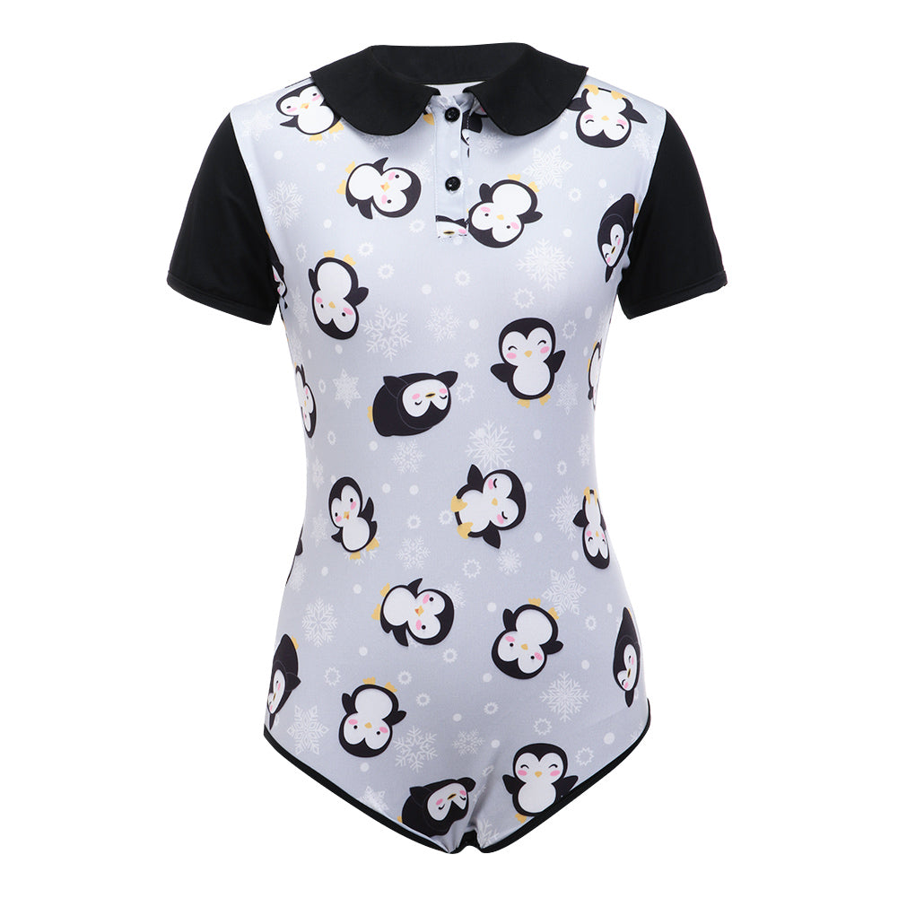 short sleeves and Cute Little Happy Penguin theme prints cute design. Three crotch snaps for easy dressing and a secure fit. Thicker, higher quality fabric than other brands that are shaped to fit the human body. Double layer for stronger durability of crotch snaps. Vibrantly colored prints just like real baby one piece size: XS-6XL **Thighs high not included Polyester, cotton Spandex