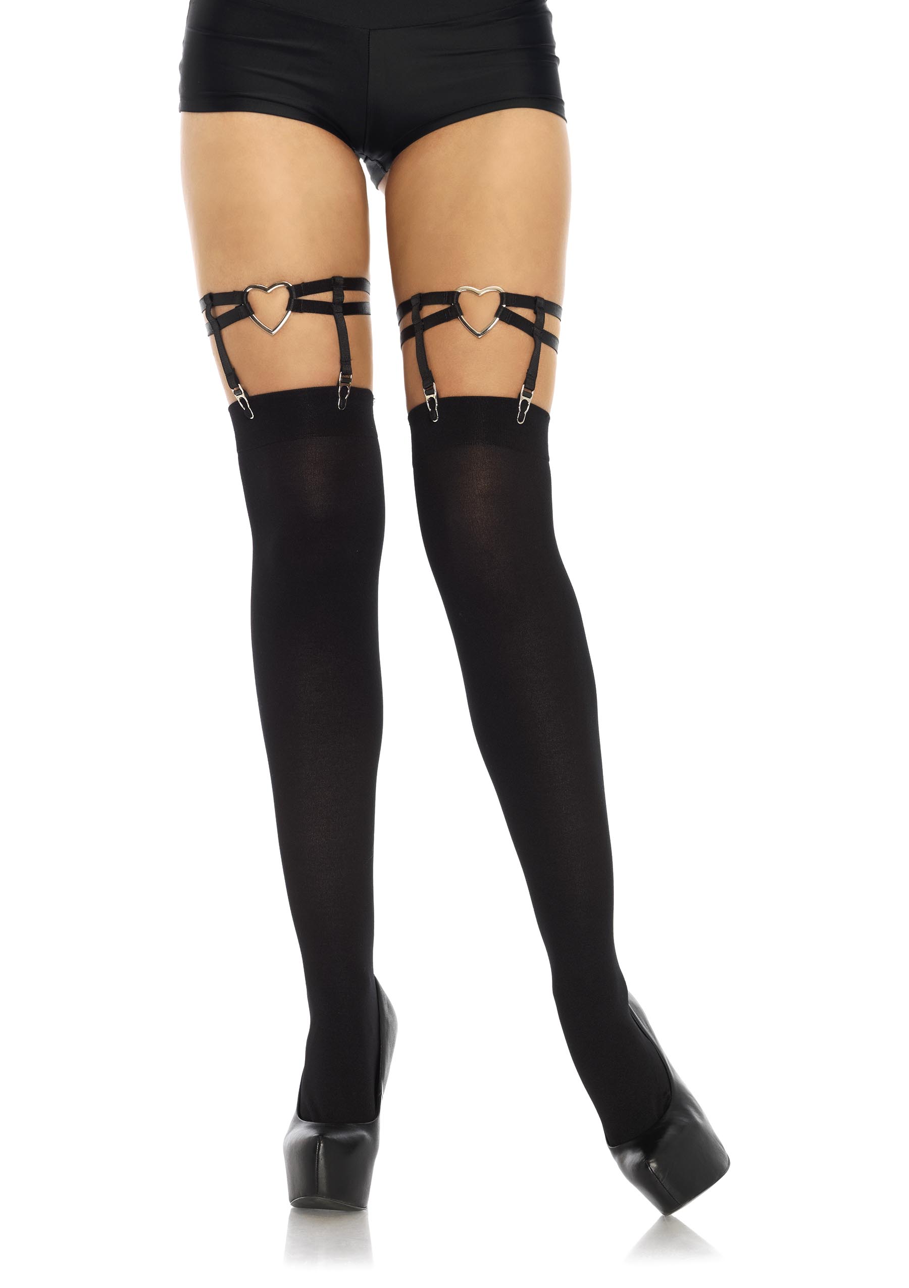 Dual strap elastic thigh high garter suspender with heart. Garter only, hosiery is separate.