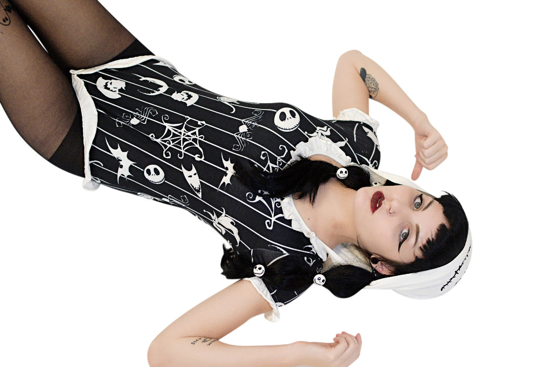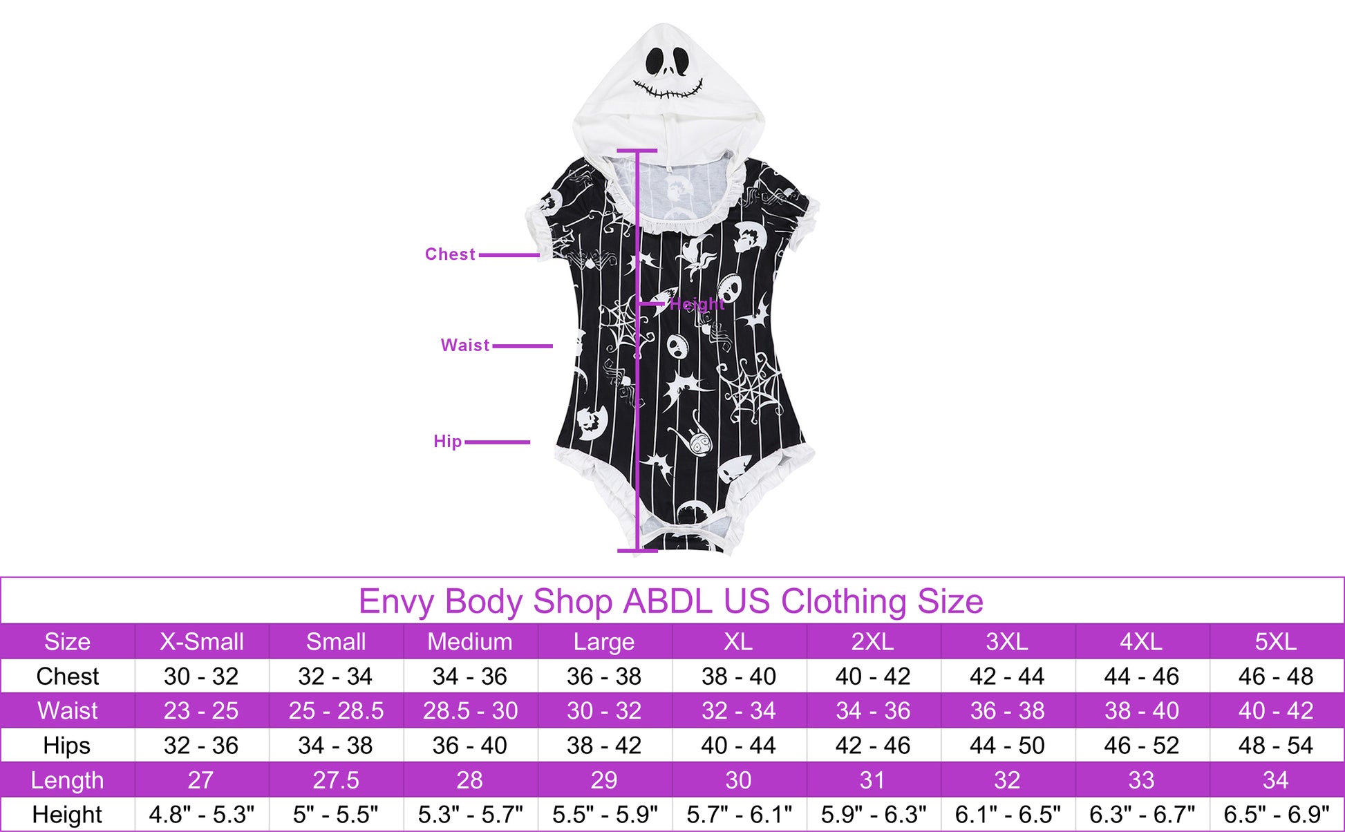 Cute Lil Haunted Dreams Romper are unique yet suitable for all year long private/public wearing. Three crotch snaps for easy dressing and a secure fit. come with hoodie design Thicker, higher quality fabric than other brands that is shaped to fit the human body Vibrantly colored prints just like real baby one piece (**Pantyhose is not included/stuffy not included) Soft on skin and stretches to fit milk silk Great for age-play/cosplay/costume/ kawaii fashion little sizing tips ( run smaller so go size up ) Model in pictures is 5'8 weight 120lbs, she was wearing size S Customer A that is 5'7 weight 162lbs , 40D bra can fit in size XL very well Customer B that is 5'5 weight 120lbs, 32B bra can fit in size S very well