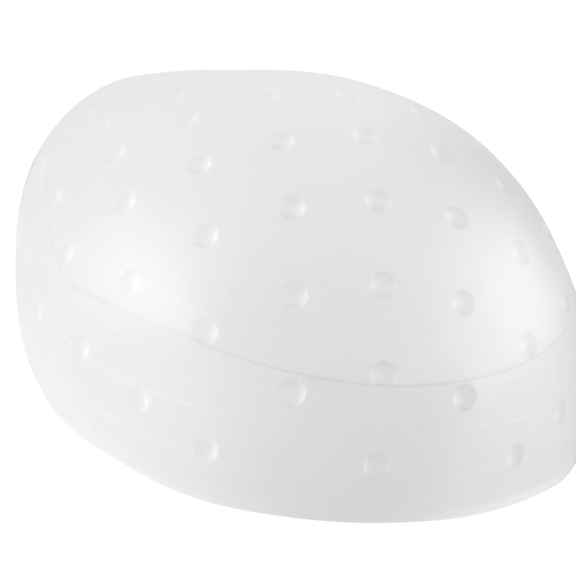 The Lymph Flow Shell can be placed under the bra/compression garment directly onto the skin in order to increase a targeted pressure and to support compression therapy at particularly localised edema Silicone shell (100% medical silicone). Ideal as an insert into the garmet For support during lymphedema therapy for localized edema in the breasts The textured surface provides a light massage effect through small nubs on the inside of the shell and thus supports the loosening of the fibrotic tissue. Washable and re-usable, easy to clean for daily use 100% medical silicone One size (can be cut to size individually) 100% Polydimethylsiloxan, Talkum Before first application and before each use the Lymph Shell has to be cleaned with the Amoena Cleanser and the soft brush.
