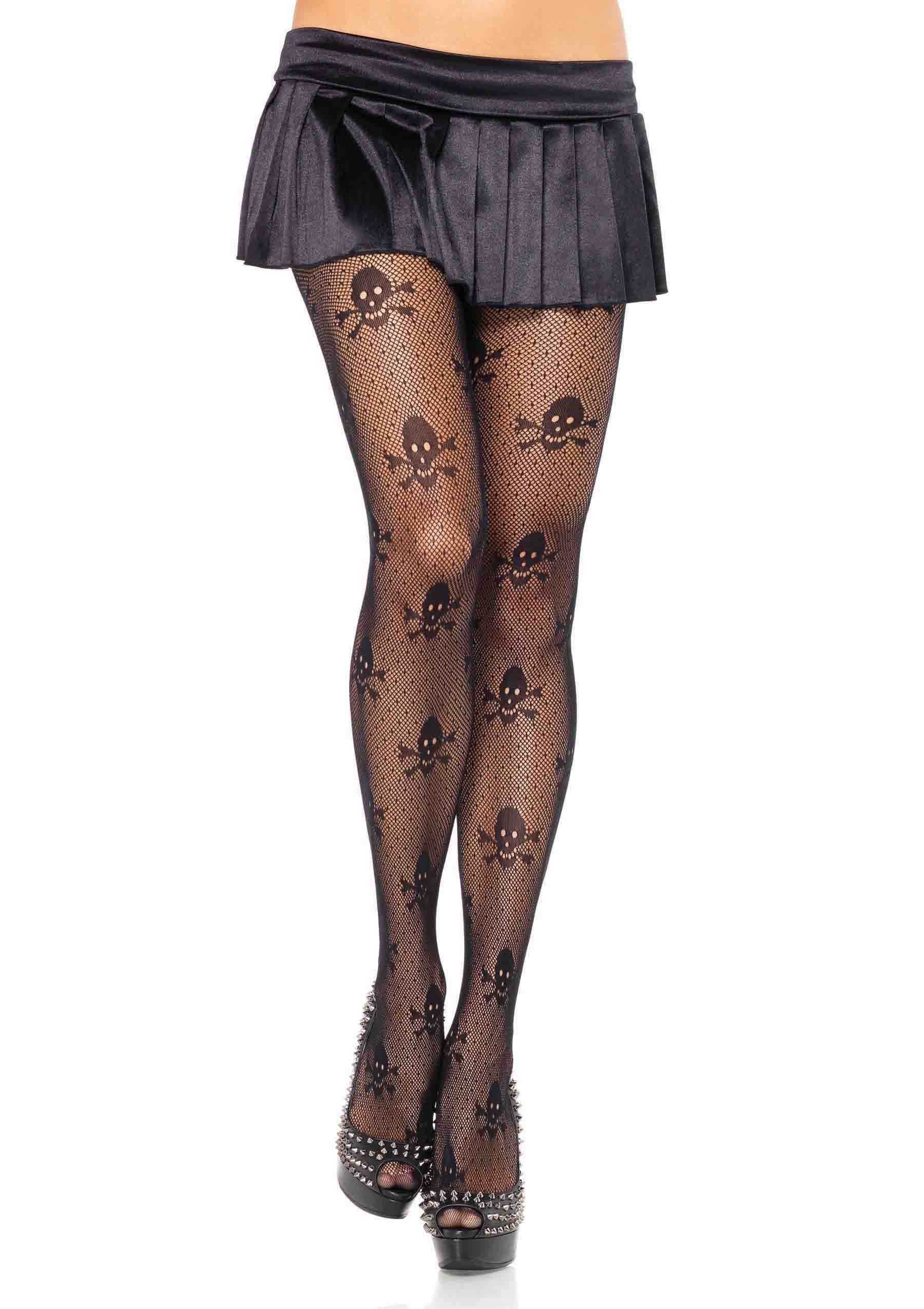 Micro net skull print pantyhose O/S BLACK, 90% NYLON 10% SPANDEX