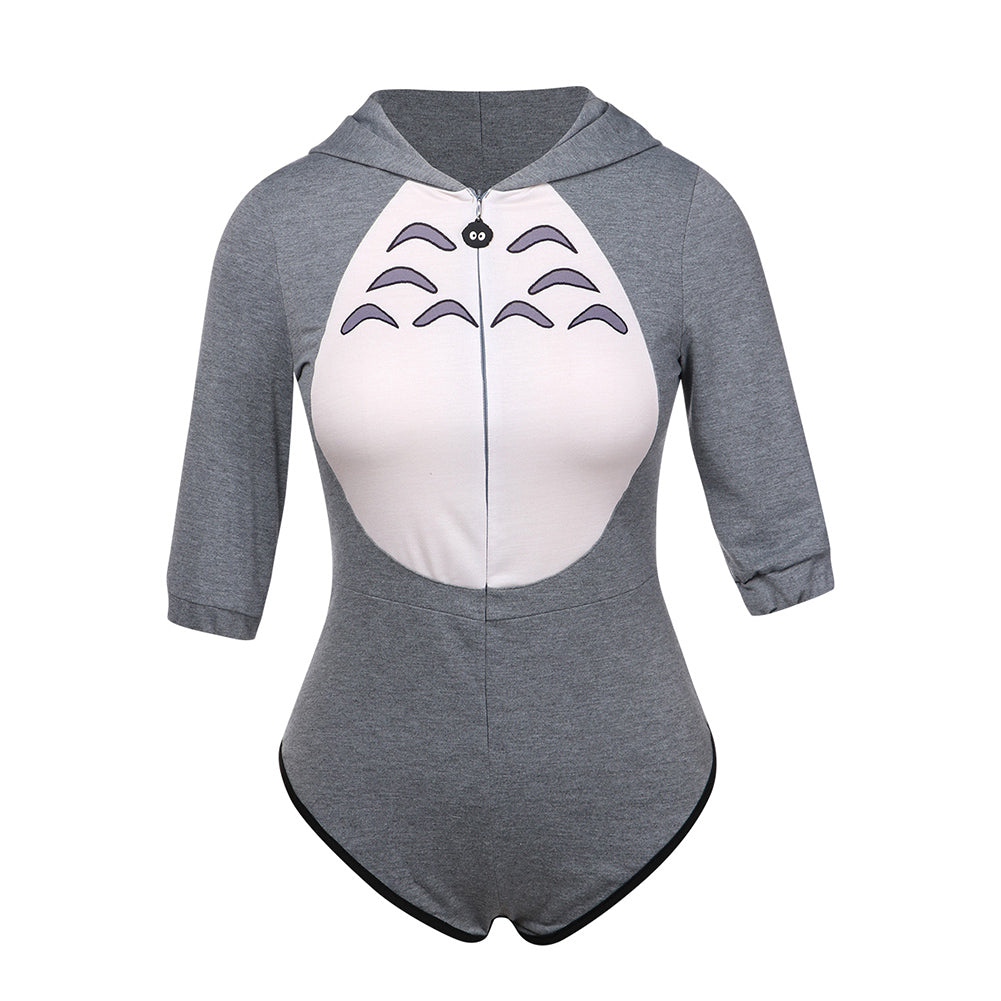 Cute Totoro Romper are unique yet suitable for all year long private/public wearing. Three crotch snaps for easy dressing and a secure fit. come with removable TOTORO Black Dust Soot sprites Susuwatari Thicker, higher quality fabric than other brands that is shaped to fit the human body Vibrantly colored prints just like real baby one piece (**Pantyhose is not included/if you are XL and above go size up for a snug fit) Soft on skin and stretches to fit LIMITED QUANTITY GET YOURS FAST!!!! Are you a super a fan of Hayao Miyazaki animation ? My Neighbor Totoro is one of many people favorite !!! Story of My Neighbor Totoro In 1958 Japan, university professor Tatsuo Kusakabe and his two daughters, Satsuki and Mei, move into an old house to be closer to the hospital where the girls' mother, Yasuko, is recovering from a long-term illness. The house is inhabited by tiny creatures called susuwatari—small, dark, dust-like house spirits seen when moving from light to dark places. When the girls become comfortable in their new house, the soot spirits leave to find another empty house. One day, Mei discovers two small spirits who lead her into the hollow of a large camphor tree. She befriends a larger spirit, which identifies itself by a series of roars that she interprets as "Totoro". She falls asleep atop Totoro, but when Satsuki finds her, she is on the ground. Despite many attempts, Mei is unable to show her family Totoro's tree. Tatsuo comforts her by telling her that Totoro will reveal himself when he wants to. One rainy night, the girls are waiting for Tatsuo's bus, which is late. Mei falls asleep on Satsuki's back and Totoro appears beside them, allowing Satsuki to see him for the first time. Totoro has only a leaf on his head for protection against the rain, so Satsuki offers him the umbrella she had taken for her father. Totoro is delighted and gives her a bundle of nuts and seeds in return. A giant, bus-shaped cat halts at the stop and Totoro boards it and leaves. Shortly after, Tatsuo's bus arrives. The girls plant the seeds. A few days later, they awaken at midnight to find Totoro and his colleagues engaged in a ceremonial dance around the planted seeds. The girls join in and the seeds grow into an enormous tree. Totoro takes the girls for a ride on a magical flying top. In the morning, the tree is gone but the seeds have indeed sprouted; it is left unclear whether the girls were dreaming. The girls find out that a planned visit by Yasuko has to be postponed because of a setback in her treatment. Mei does not take this well, and argues with Satsuki, later leaving for the hospital to bring fresh corn to Yasuko. Her disappearance prompts Satsuki and the neighbors to search for her. In desperation, Satsuki returns to the camphor tree and pleads for Totoro's help. Delighted to help, he summons the Catbus, which carries her to where the lost Mei sits. The bus then whisks them over the countryside to see Yasuko in the hospital. The girls overhear a conversation between their parents and discover that she has been kept in hospital by a minor cold but is otherwise doing well. They secretly leave the ear of corn on the windowsill, where it is discovered by their parents, and return home. Eventually, Mei and Satsuki's mother returns home, and the sisters play with other children, while Totoro and his friends watch them from afar. Sweet story that bring back lot of lovely memories of many people childhood