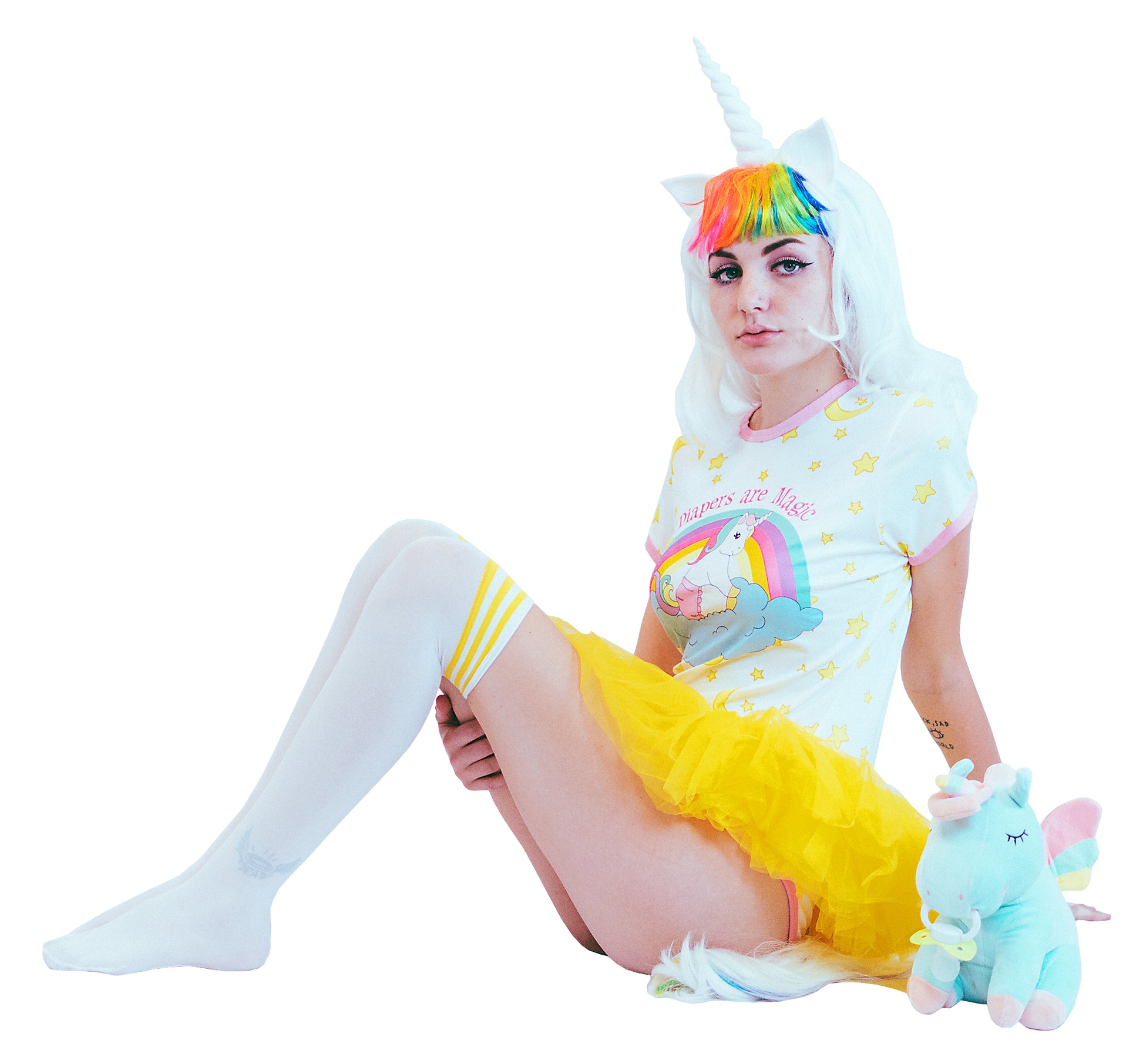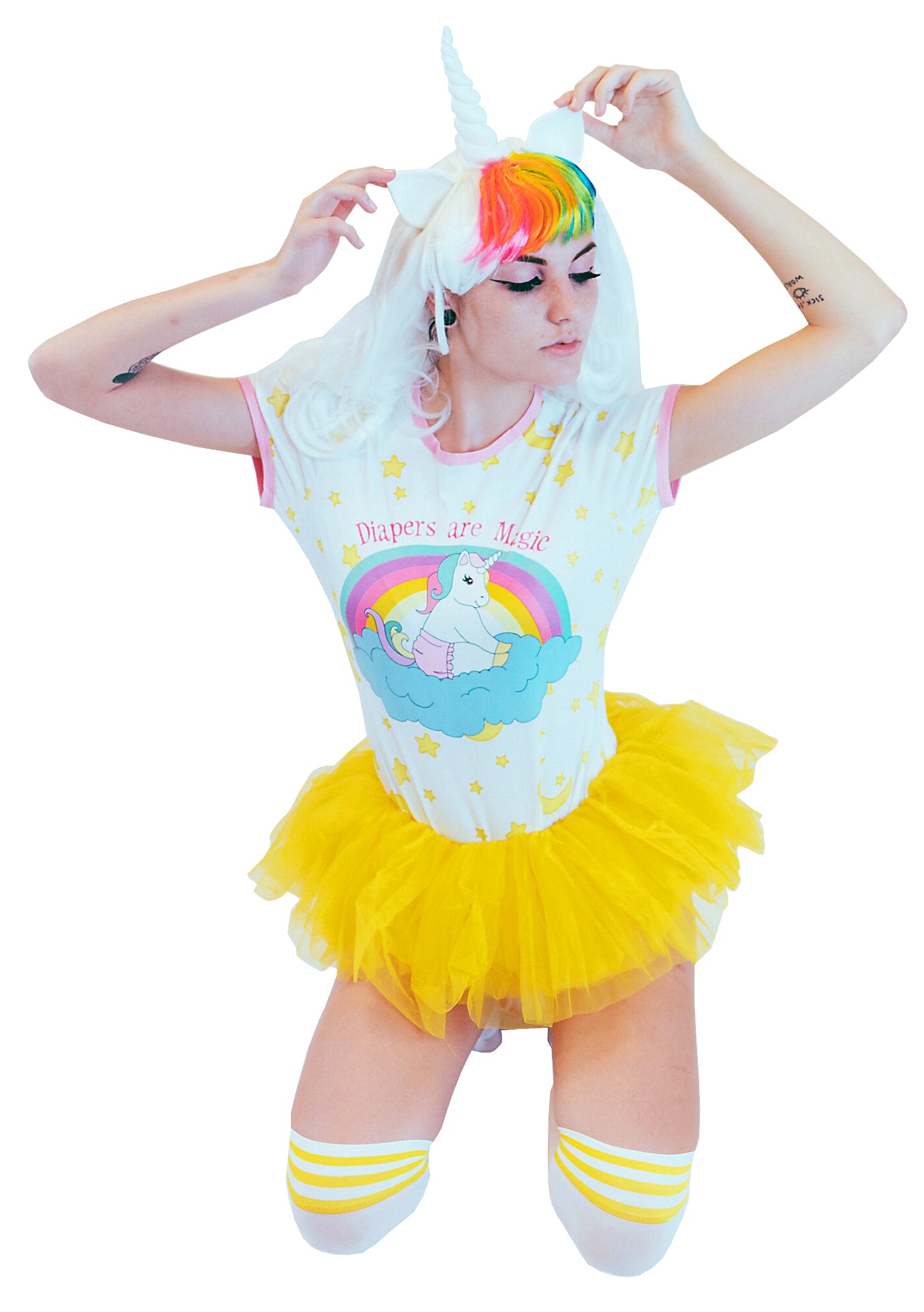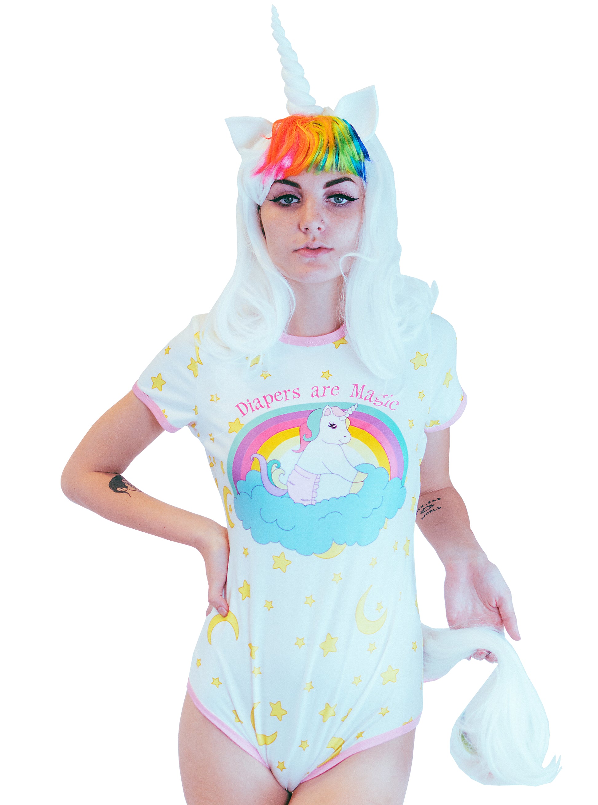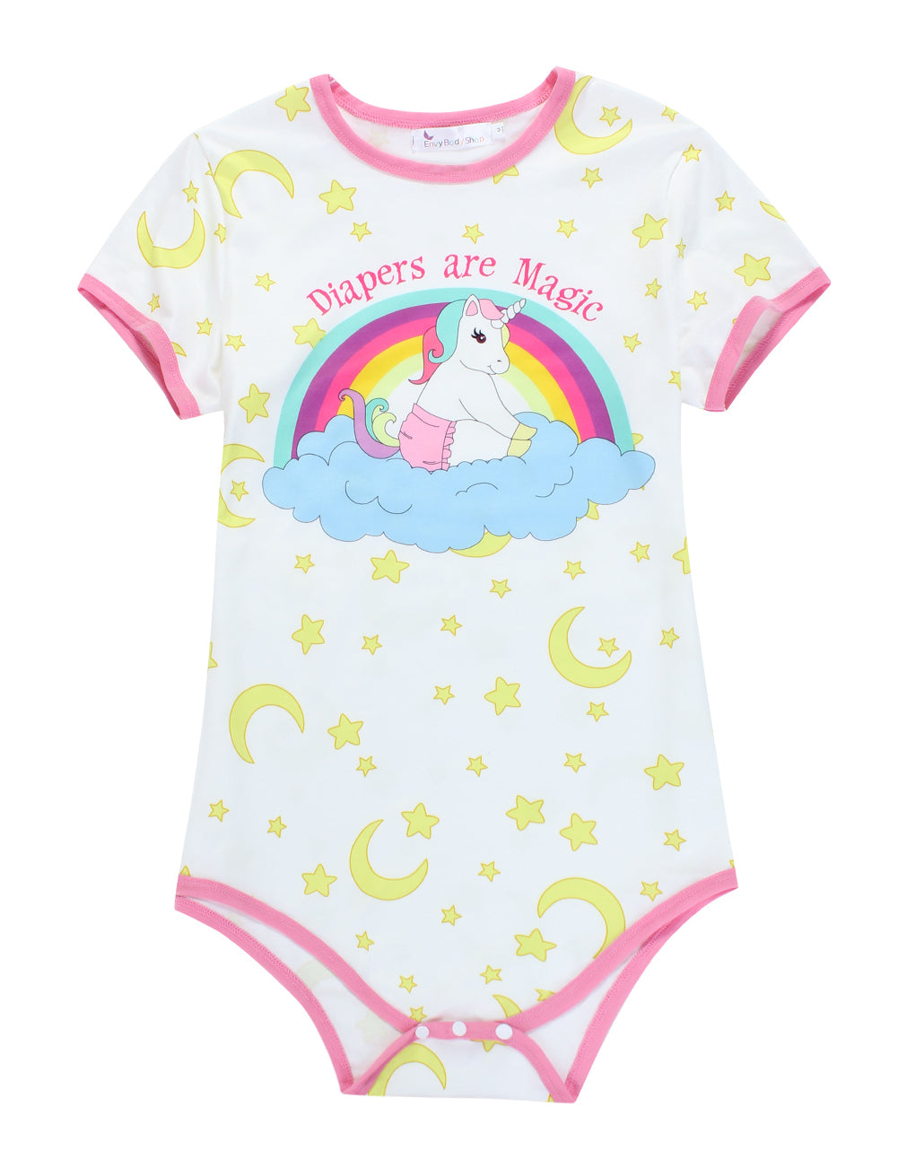 Our new Rainbow Baby Unicorn Romper is finally here! There are plenty of unicorn designs, llammacorns, mermaid corns, but finally we have the cute baby unicorn in diaper for our little community. short sleeves and Cute Rainbow Baby Unicorn theme prints cute design. Three crotch snaps for easy dressing and a secure fit. Thicker, higher quality fabric than other brands that is shaped to fit the human body. **Thighs high not includes.