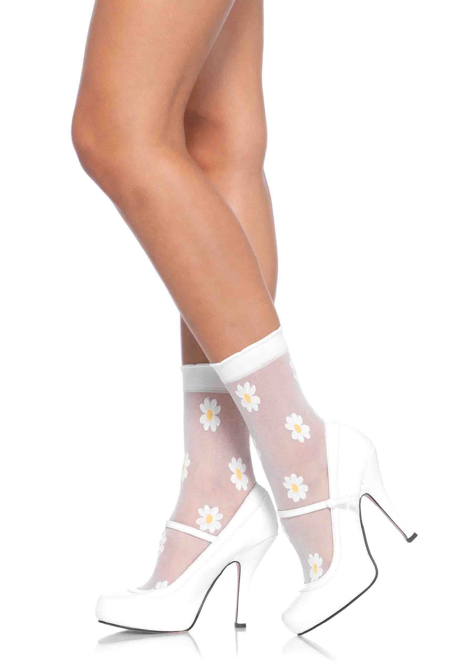 Sheer spandex woven daisy anklets O/S WHITE/YELLOW, 58% Nylon 34% Polyester 8% Spandex